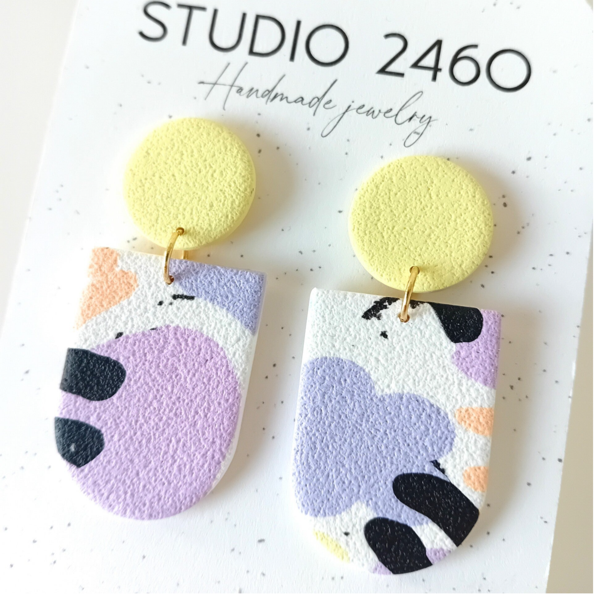 - afmeting: de studio 2460 kaartjes zijn 10.5cm hoog en 7.5cm breed, dan kan u de grootte van de oorbellen inschatten